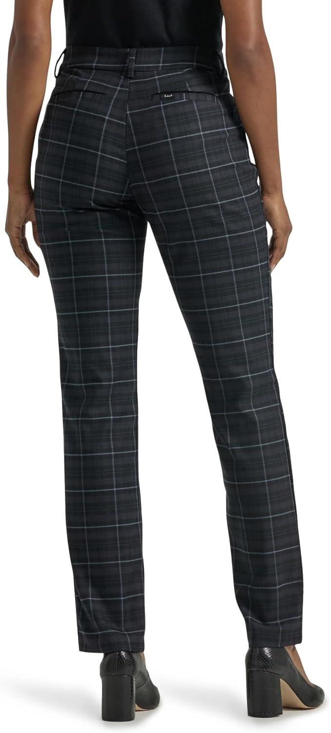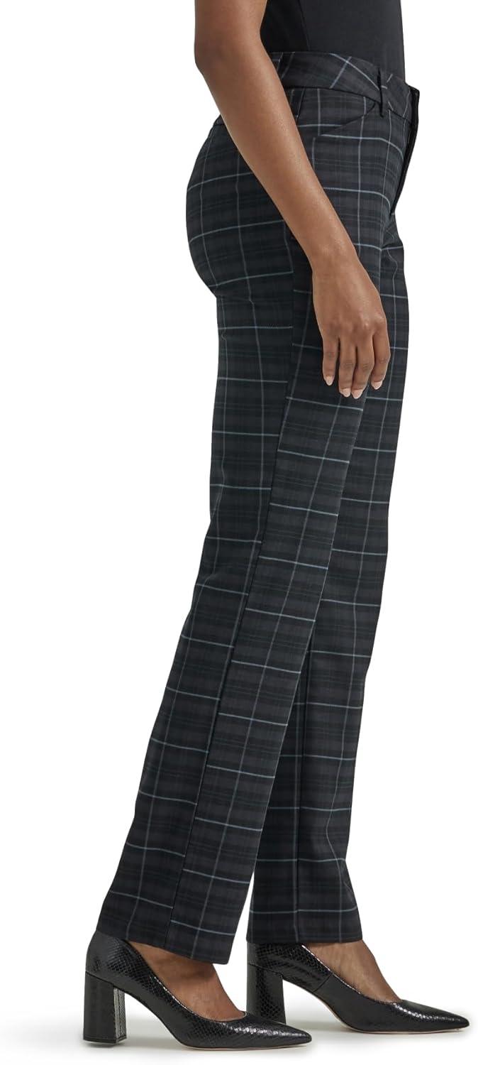 Lee Women’s Petite Wrinkle Free Relaxed Fit Straight Leg Pant(Black/Charcoal Plaid)