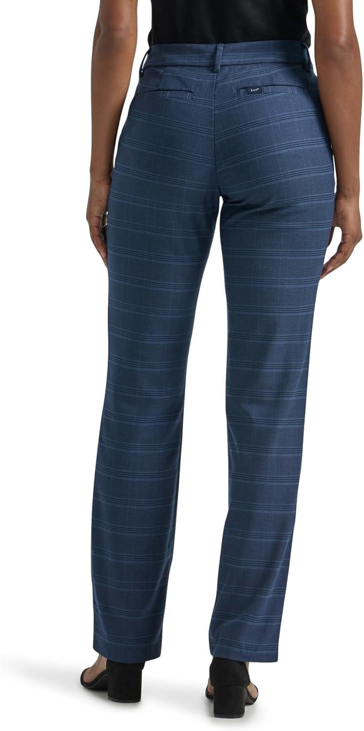 Lee Women’s Petite Wrinkle Free Relaxed Fit Straight Leg Pant(Navy/Insignia Blue Plaid)